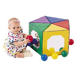 "Slide caterpillar-like across the floor and are hinged together along the floor line. Flip either on their sides and wrap around small bodies for support. ALLOW UP TO THREE WEEKS BEFORE SHIPPING, AS CHILDREN'S FACTORY PRODUCTS ARE MADE-TO-ORDER. Compact 11"" high pentagon with five distinct acrylic mirror faces, unfolds into a kaleidoscopic theater of visual perception. Perfect for infant/toddler image cognition, speech therapy or just playing dress up or making funny faces! The mirrors used in Children's Factory products are manufactured out of a material called PET. They are flexible and bendable and highly shatter resistant. They clean easily with Pledge furniture cleaner and a soft cloth. DO NOT use ammonia based sprays or other cleaners. Pledge cleans, polishes and prolongs the life of the mirror. This Multi-Image Mirror Pentagon comes in pastel colors. We have the same infant toy in primary colors. 11"" high x 5"" thick. A quality Children's Factory product. SHIPPING NOTE: Children's Factory products are shipped directly from the manufacturer and may take up to three weeks before shipping. But considering all the creative enjoyment they will bring, they're well worth the wait."