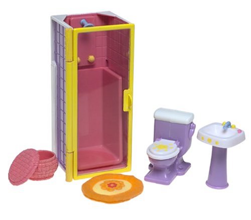 When Nick Jr. cartoon star Dora the Explorer is not off on an adventure, she can be found in her house with her Mami and Papi. This furniture set decorates the bathroom within the Fisher-Price dollhouse version of the Latina adventurer's home. The pack includes a shower that also converts into a bathtub, a pedestal sink, a toilet, a hamper, a bath mat, and an area rug. All furniture is made of durable plastic and the bath mat and area rug are made of soft polyurethane foam. Kids can acquire furniture sets (sold separately) to furnish each room until the house is complete. Kids can also collect additional figures and accessories so all Dora's friends and relativesAbuela, cousin Diego, Swiper, Boots, and Tico--are present. --Cristina Vaamonde